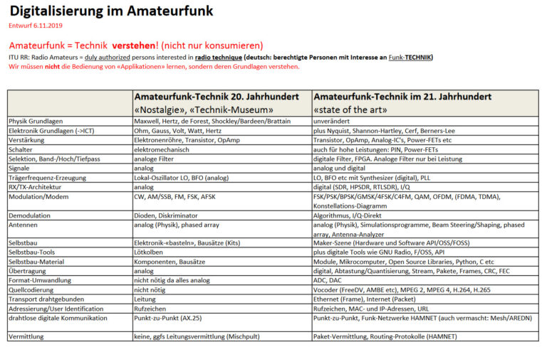 Starting around 1920, the hobby „Amateur Radio“ attracted many people who were interested in then revolutionary wireless communication technology. For many decades, radio amateurs were able to keep pace with rather slowly advancing technologies. Analogue, of course. Radio amateurs were esteemed for their technical skills and knowledge, and therefore in high demand where such qualification was sought after: military communications, police, radio and TV broadcast, studios, security, regulators, colleges and universities and the like.